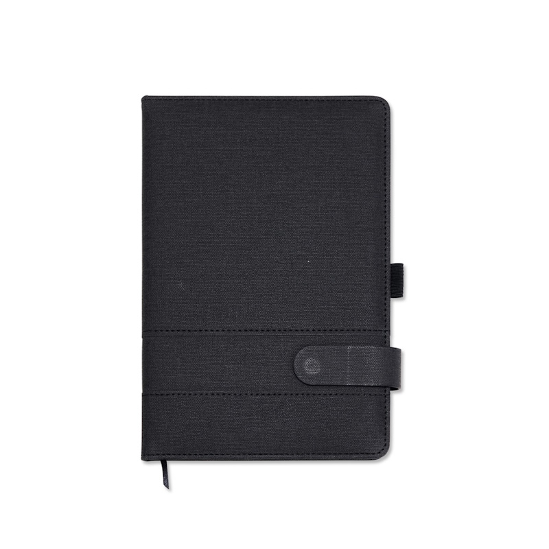 Bloco moleskine capa dura em poliuretanos várias cores, 14 x 21 cm , 94 folhas brancas pautadas com fechamento magnético preto e marcador de página. Impressão a uma cor frontal.