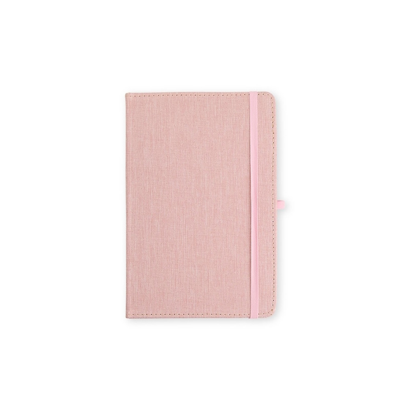PL BL 069 – Bloco moleskine capa telada várias cores, 14 x 20 cm, com 80 folhas brancas pautadas e porta caneta.