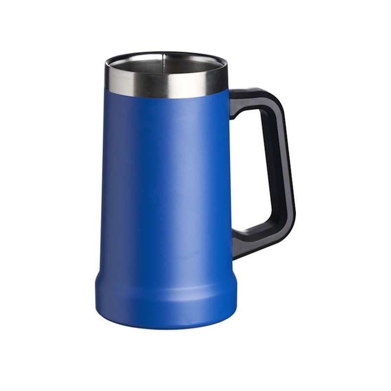 PL CAT 052 – Caneca térmica tipo stanley, em aço inox, 700 ml, com revestimento de, cabo plástico preto e sem tampa.