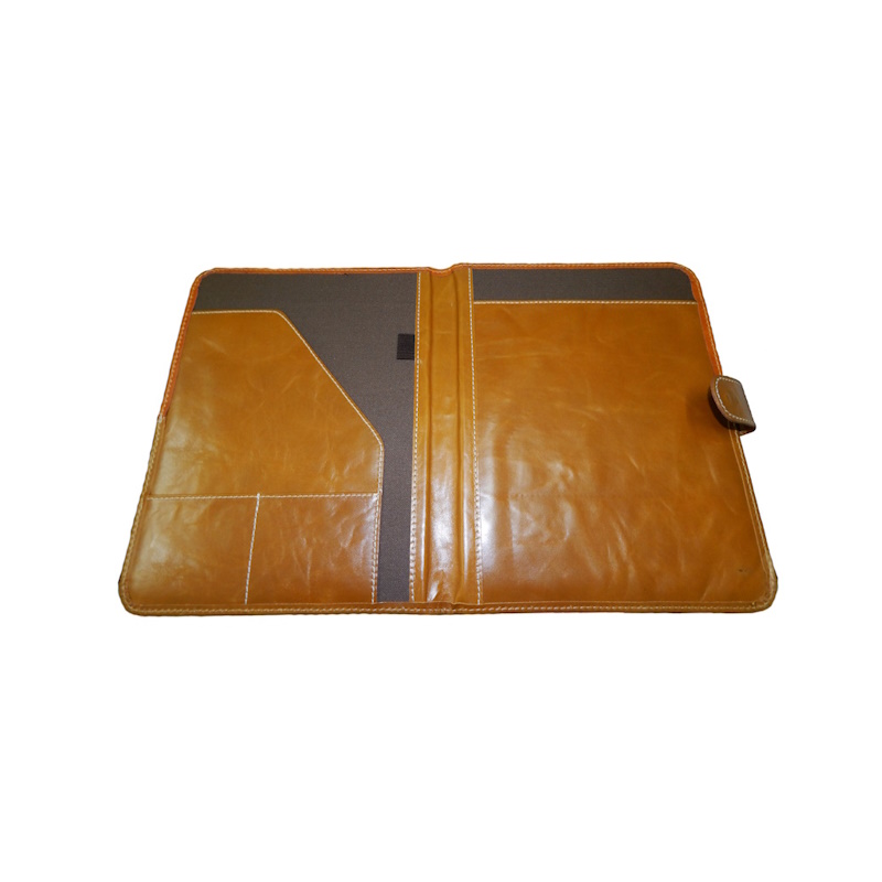 Pasta executiva em couro natural ou sintético, várias cores, com 2 porta cartões, aba para papeis e bloco 20 folhas em branco.