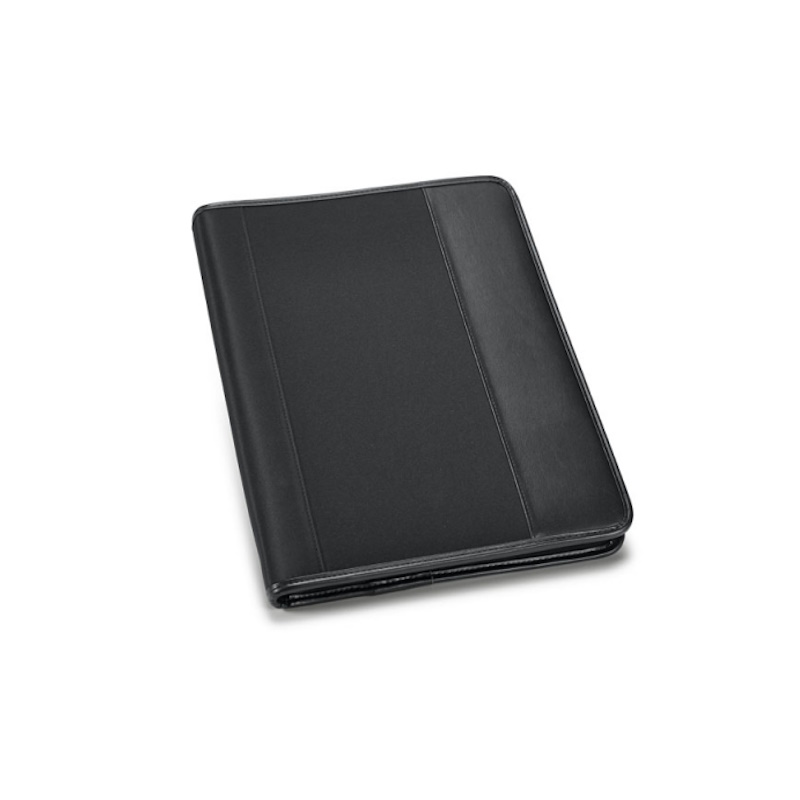 JL OBC 92058 – Sofisticada pasta A4 da Jaques Laffit em couro ecológico e microfibra com 4 argolas de 20 mm e bloco com 20 folhas pautadas, 265 x 340 x 45 mm.