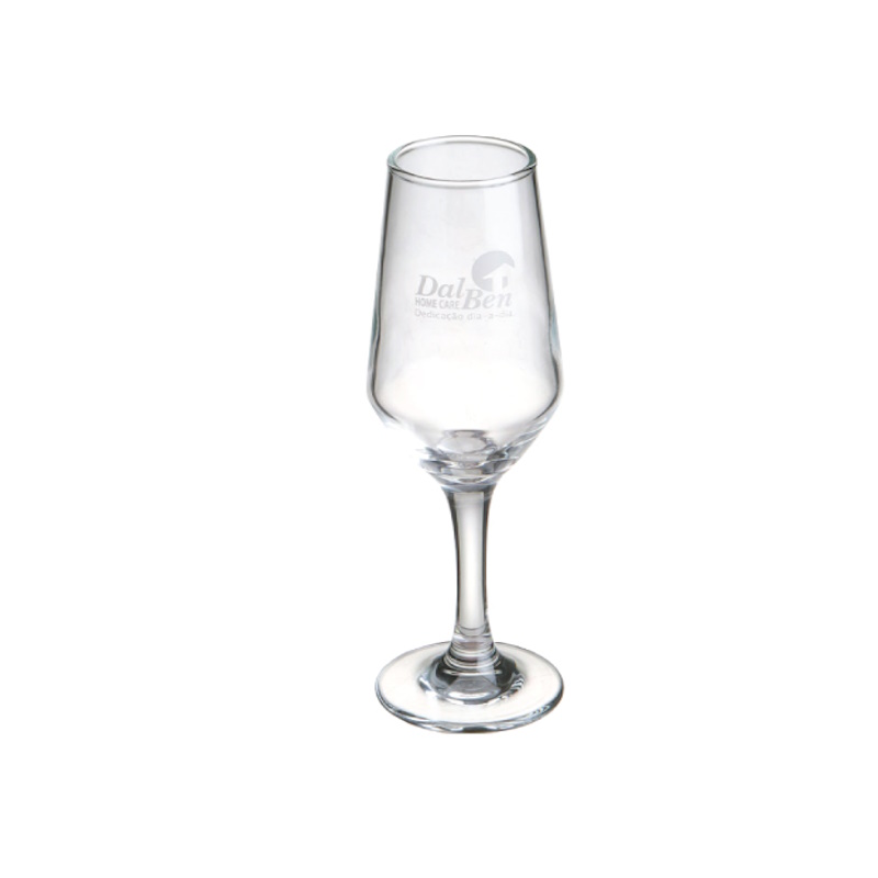 Taça de champagne vidro. Impressão a uma cor em uma face